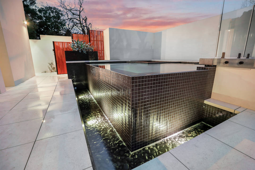 This gorgeous design by Liquid Blue Pools is as much a stunning courtyard water feature as it is a place to take a swim or spa.