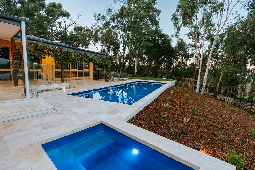 The home’s pathway to the pool is fringed with Australian plants that mirror the Gruyere bushland, while on the other side of this impressive project sits an abundant alfresco entertaining space just beyond the pool and spa. With stunning timber flooring and ceiling beams, this area beautifully complements the natural landscape that it overlooks. As a testament to Amescape’s skill and talent, this brilliant project received gold awards for both Best Residential Fibreglass or Vinyl-lined Pool + Spa Combination and Best Residential Fibreglass Pool over $100,000 at MPBAA Australian Pool & Spa Awards, in conjunction with the pool’s builder, Compass Pools.
