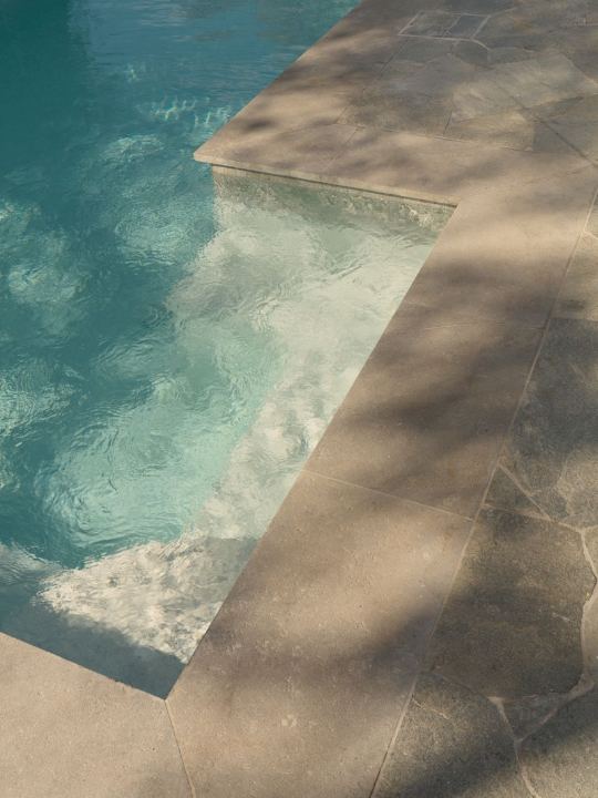 The incorporation of natural, rich tones and textures through paving and furniture perfectly offsets the glistening water of the pool, alluring every passerby to enjoy the space.