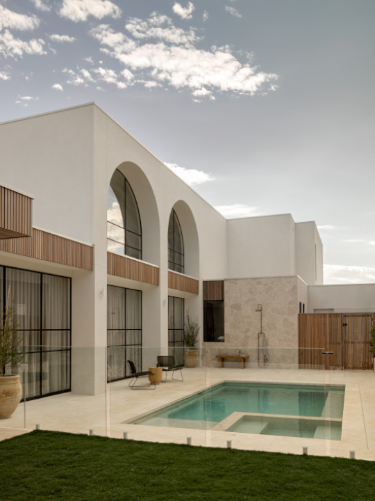 Breathe in the luxury of this sophisticated pool and spa combo, destined to delight as the focal point of the backyard. Positioned beside the home and framed by soaring double-height arch windows, the pool brings a distinct European elegance to the space, effortlessly fusing with the home’s cohesive aesthetic. As a family home, the layout was thoughtfully planned to preserve a generously sized lawn area for kids to enjoy.