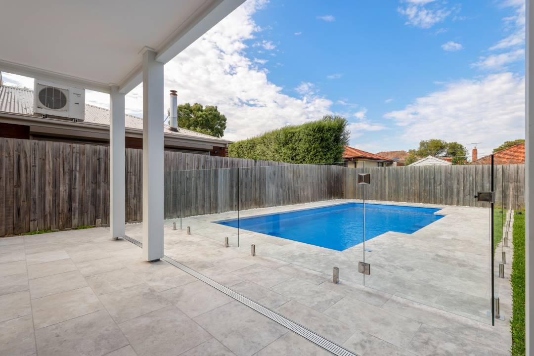 Around the pool, a combination of Tundra Light Limestone in a sandblasted finish and Light Grey Limestone with a sandblasted and brushed texture creates the ultimate retreat – soft underfoot and perfect for families to relax or play. This thoughtful choice of